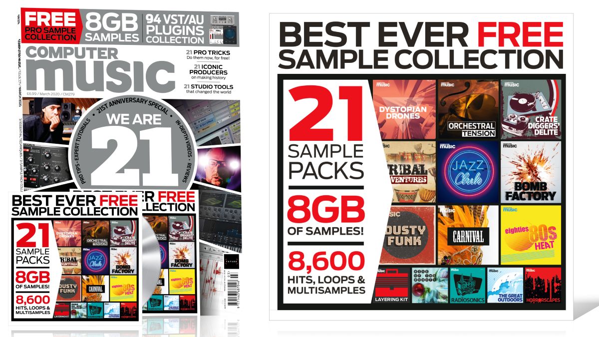 This month’s issue of Computer Music is choc full of over two decades of knowledge and sounds. With the March 2020 issue (CM279) you can pick up a 21- pack strong sample library weighing in at 8GB. There’s also the mighty CM Plugin Suite of 94 plugins, all for free.